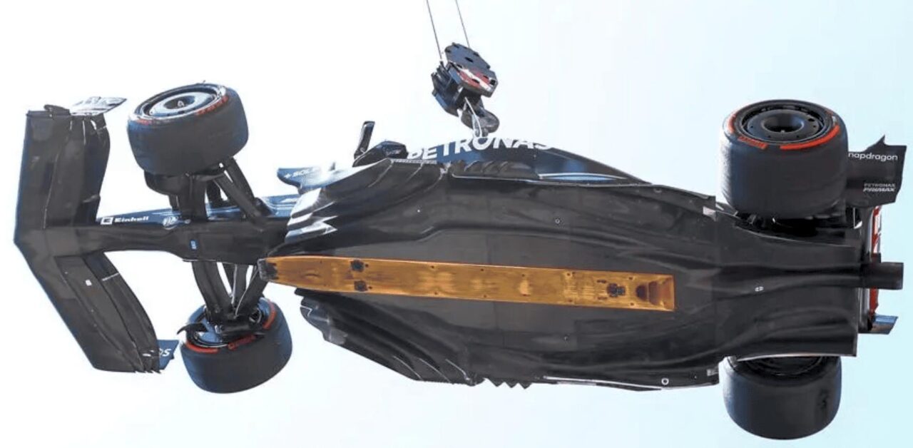 Welcome to the tyranny of the skid plank—a flat wooden board under the car that measures ground clearance. If it wears too thin, it’s assumed the team ran the car too low to the ground, gaining unfair aerodynamic advantage. That’s it. Game over. Thanks for playing.